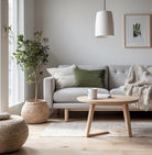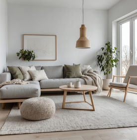 要素: 木材、明るい色調、シンプルで機能的な家具、温かみのある布製品。