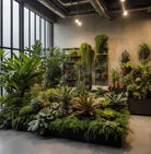 観葉植物、多肉植物、自然光、エコフレンドリーな素材、植物を主役にしたデザイン。