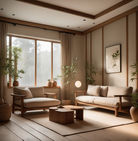 要素: 竹や和紙、温かみのあるトーン、シンプルで機能的な家具、和の要素と北欧のミックス。